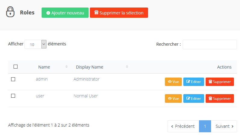 À partir de l'administration on peut gérer les rôles :De base on n'en a que 2 (d'ailleurs la pagination n'est pas très heureuse là...).