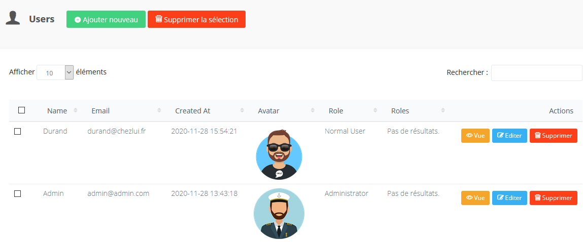 J'arrive facilement à ajouter un utilisateur :Les petites icônes pour l'ordre de tri fonctionne bien (sauf pour les rôles), on se demande juste l'intérêt d'en avoir sur la colonne des avatars et des boutons...