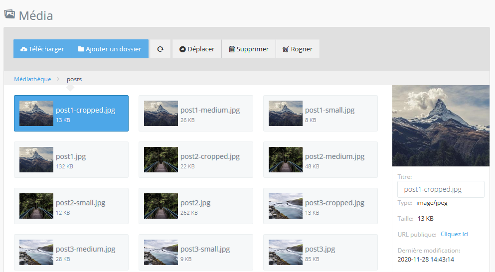 Mais on peut complètement changer cette organisation. D'autre part on peut envoyer, déplacer, renommer, visualiser ou supprimer une image.