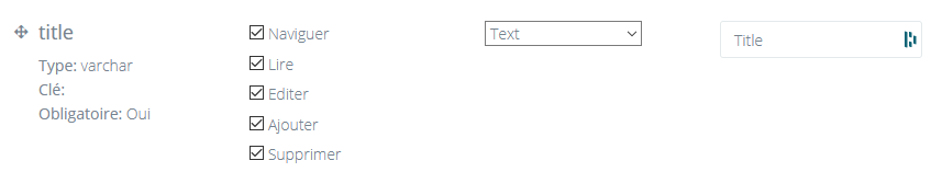 Pour chaque colonne d'une table on peut définir précisément les opérations possibles, le type de contrôle (text, checkbox, textarea...) à prévoir et le nom à afficher :