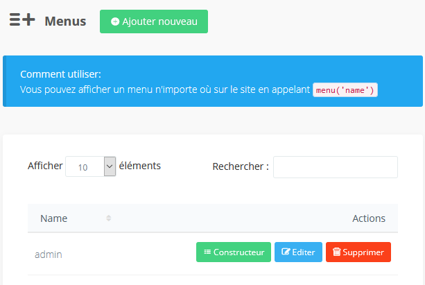 L'intégration d'un menu se fait avec un helper dans une vue :